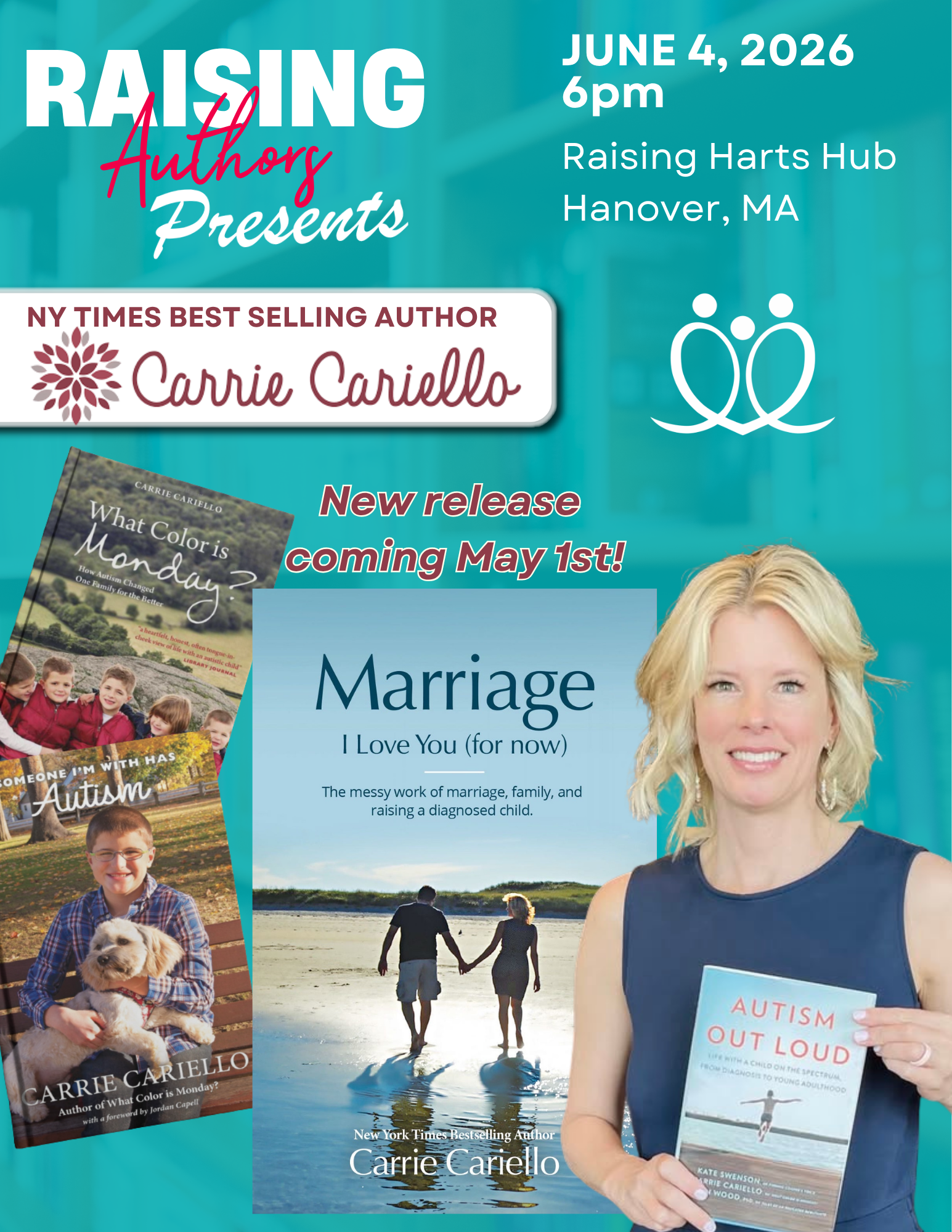 Join us for a special Raising Authors evening with Carrie Cariello, a beloved voice in the autism community known for her honest, heartfelt storytelling. Carrie will share reflections from her journey as a parent, offering insight, humor, and connection for families walking similar paths. Come be inspired, feel seen, and connect with others who truly understand.